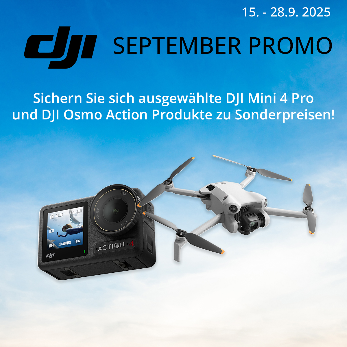 Wir bieten Ihnen eine exklusive Rabattaktion im September mit DJI, dank der Sie hochwertige Drohnen und Actionkameras von DJI mit einem Rabatt erwerben können! 🎥🚁 Die Aktion gilt vom 15.9. bis zum 28.9.2025 oder solange der Vorrat reicht.