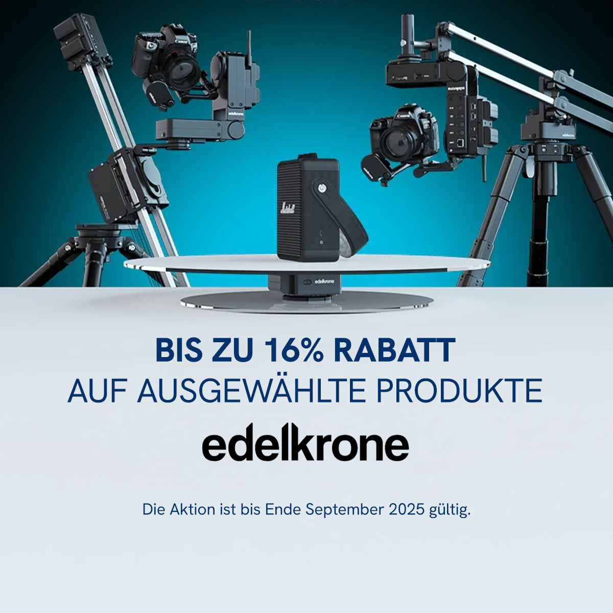 Sichern Sie sich einen Rabatt auf ausgewählte Produkte der Marke Edelkrone, die ideal für professionelle Fotografen und Kameraleute sind! Bis Ende September 2025 erhalten Sie bis zu 16 % Rabatt auf Slider, Trolleys, Stative und weiteres innovatives Zubehör. Hier können Sie auswählen.