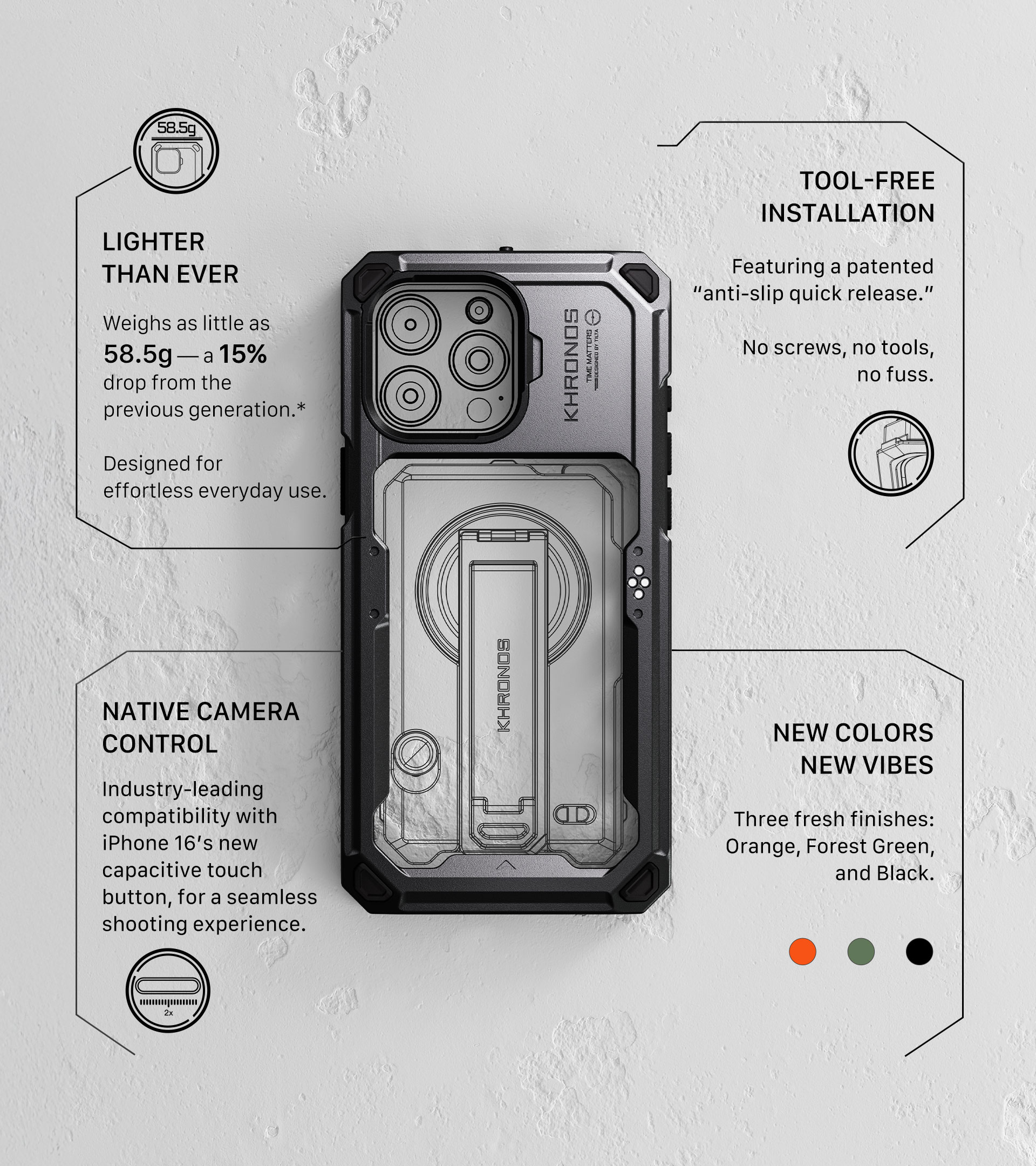 Erleben Sie das Filmemachen wie nie zuvor mit dem Khronos iPhone 16 Pro / Pro Max Case - wo Innovation auf Leidenschaft trifft.