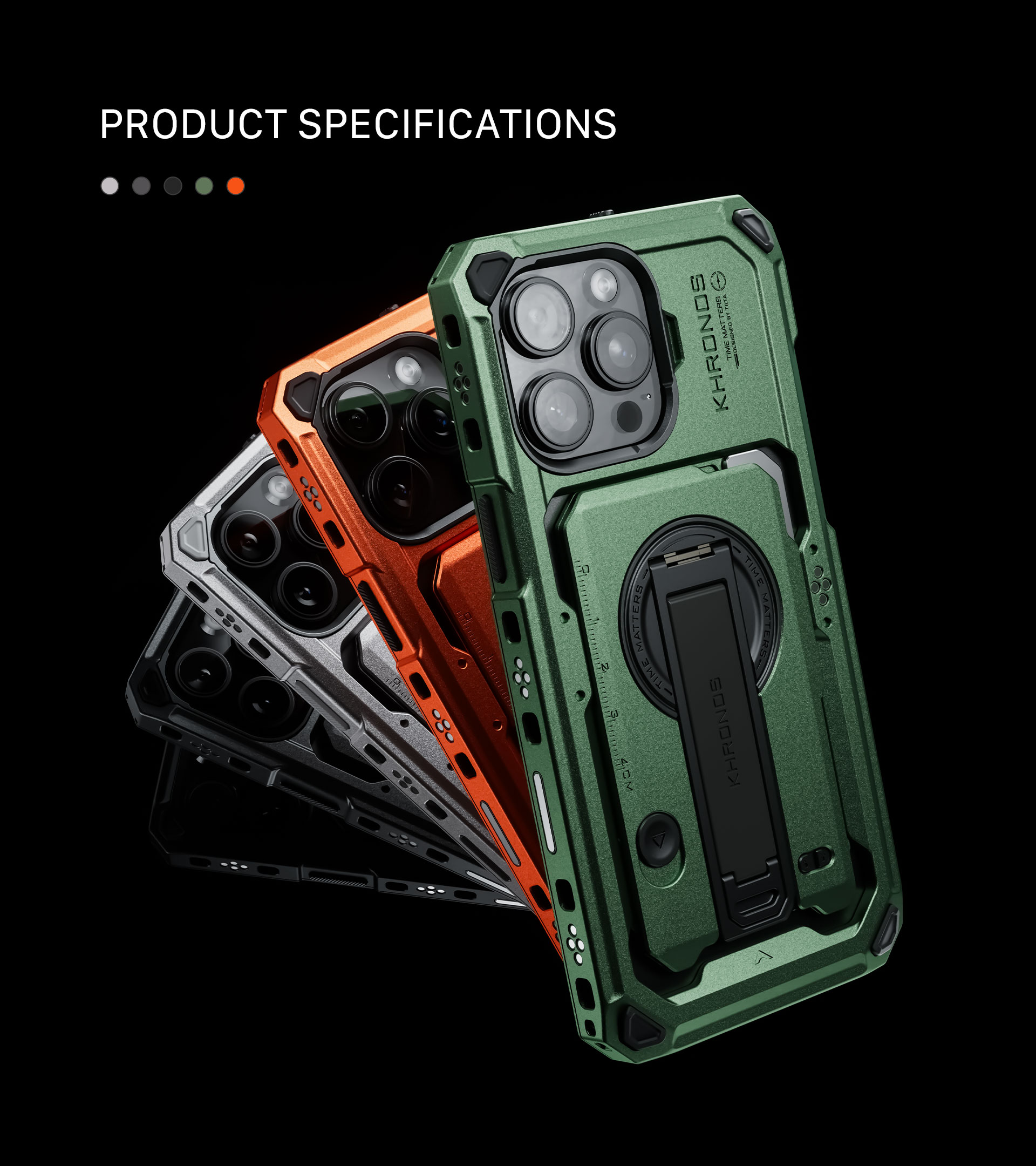 Die Khronos-Hülle ist in den Farben Space Grey, Titanium White, Forest Green, Black und Orange erhältlich und ergänzt das Design Ihres iPhones und verleiht ihm einen Hauch von Stil.