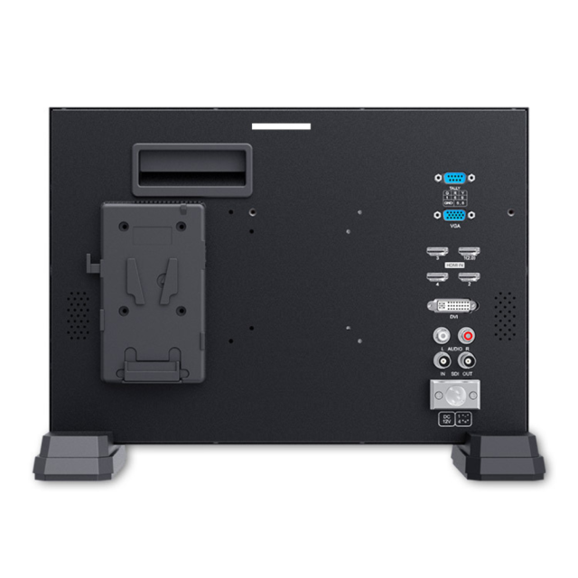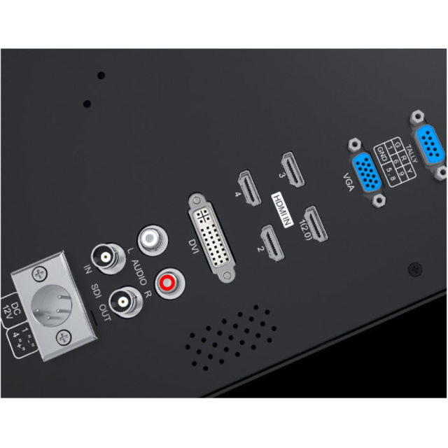 Hochwertiger Overhead-Monitor mit 15,6 IPC-LCD-Panel (3840x2160, 16:9, 300 cd/m², 170° Betrachtungswinkel) und 1x SDI-, 4x HDMI-, DVI-, VGA- und Audio (L/R)-Eingängen. Mit integriertem Quad View/Picture in Picture und 1xSDI/4xHDMI Eingängen ist es möglich, bis zu 4 Videoquellen (SD, HD-SDI, 3G-SDI und 4K HDMI 2160p) gleichzeitig zu betrachten! Der Monitor verfügt außerdem über eine Signalleuchte, einen SDI-Ausgang, einen integrierten Lautsprecher, einen Kopfhörerausgang, eine V-Mount-Batterieplatte (optional Gold Mount), einen Stromeingang mit XLR4-Anschluss und eine robuste Aluminiumblende. Natürlich gibt es auch Funktionen für die Schärfeunterstützung, den Zoom, die Pixel-zu-Pixel-Ansicht, die Bilddrehung, die Halbbildkontrolle usw.