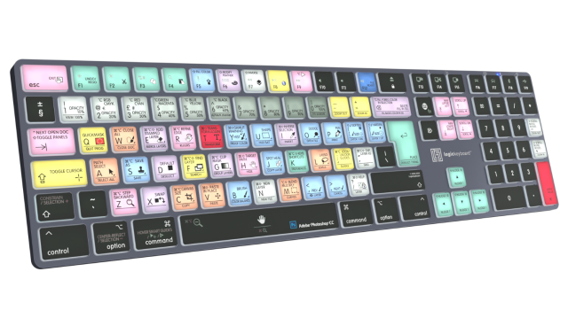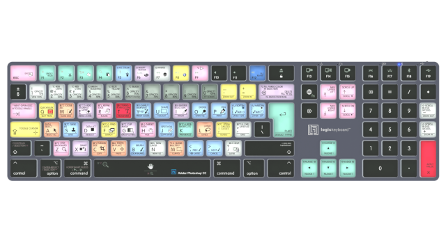 Dieses Logickeyboard ist Ihre erste Wahl bei der Bearbeitung in Photoshop. Die auf den Tasten beschrifteten Shortcut-Befehle und ihre farbkodierten Definitionen machen Sie in kürzester Zeit zu einem Meister der Photoshop-Bedienung. Das Logickeyboard ist ideal für 3D-Modellierungsstudios, professionelle Grafikumgebungen und alle anderen, die fleißig mit Photoshop arbeiten.