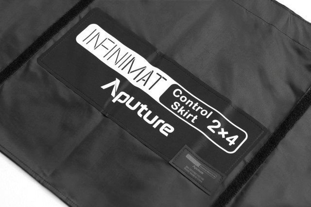 Der Aputure INFINIMAT Control Skirt 2x4 ist ein Lichtschirm (schwarzer Rock), der seitlichen Lichtaustritt verhindert. Das gesamte Licht des Leuchtpaneels wird durch die Softbox geleitet und auf das zu beleuchtende Objekt gelenkt. Der Control Skirt wird an der INFINIMAT 2x4 Softbox befestigt.