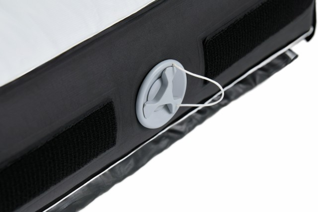 Nach dem Aufblasen hat die Softbox genug Kraft, um die Platte, das Lichtgitter und den Lichtschirm mit Klettverschluss zusammenzuhalten, auch wenn das Gerät auf dem Kopf steht oder auf Stativen montiert ist. Der Diffusor lässt sich schnell und einfach aufblasen, zum Beispiel mit einer Luftpumpe.