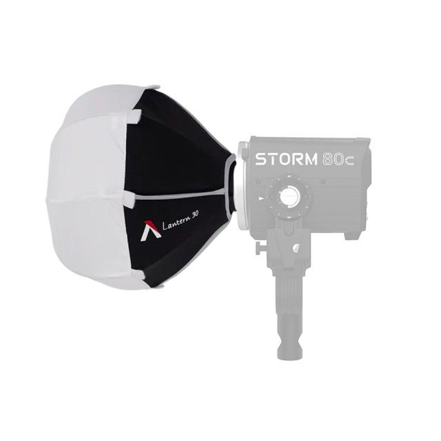 Lantern 30 ist eine kugelförmige Mini-Softbox mit einem Diffusor mit einem Durchmesser von 30 cm. Sie hat eine Mini ProLock-Halterung für den Anschluss an den STORM 80c. Lantern 30 verfügt über eine verstellbare Blende, die eine kontrollierte Lichtverteilung ermöglicht.