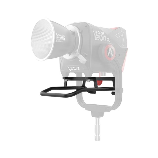 Die Kufe für STORM 1000c/1200x ist eine Stahlschiene, die an der Unterseite der STORM 1000c und STORM 1200x Leuchten angebracht wird. Die Kufe hebt die Leuchte so an, dass die CF12 Fresnel und CF12 Barn Doors darauf montiert werden können, ohne den Boden zu berühren.