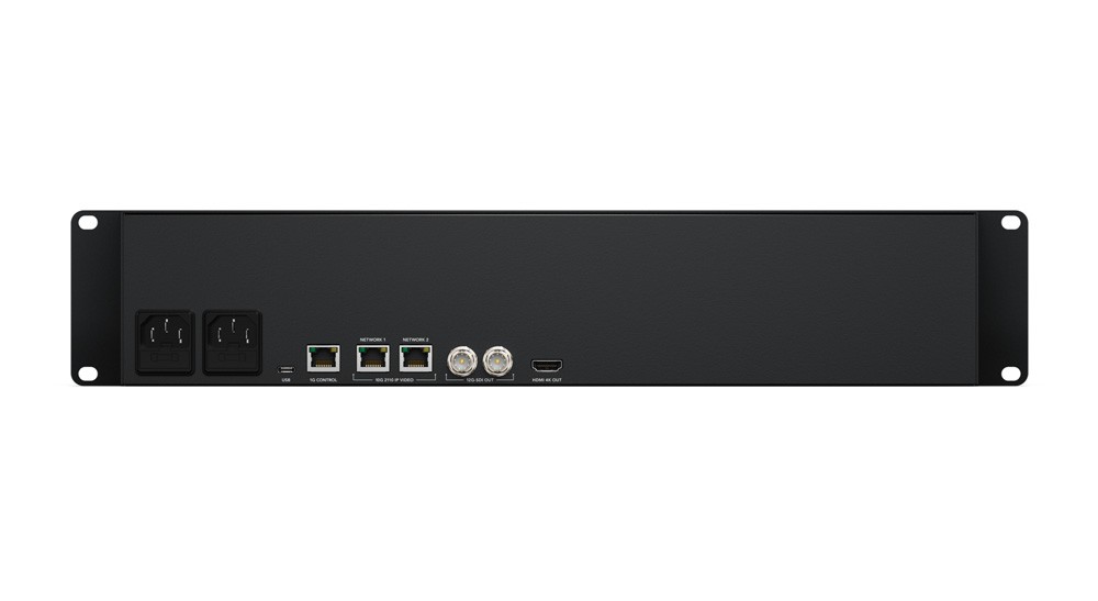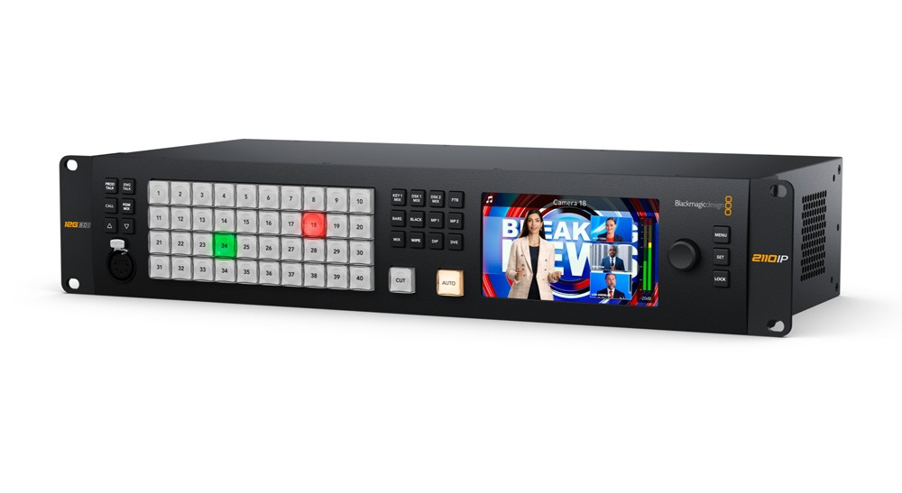 Das ATEM Monitoring Rack Panel 40 ist ein Videokonverter, der in ein größeres 2RU-Bedienfeld für ATEM-Mischer integriert ist und für den Einbau in ein Rack vorgesehen ist! Es verfügt über 40 Tasten zur Steuerung des lokalen ATEM-Mischers und ist zudem auf der Vorderseite mit einem Anschluss für die Talkback-Kommunikation ausgestattet. Der Videokonverter verfügt über zwei redundante SMPTE-2110-10G-Ethernet-Ports, die auf zwei 12G-SDI-Ausgänge und einen HDMI-Ausgang umgewandelt werden. Das Videobild wird außerdem auf dem großen, integrierten 5-Zoll-LCD-Display des Konverters angezeigt, was Ihnen eine bequeme lokale Überwachung im Rack ermöglicht!