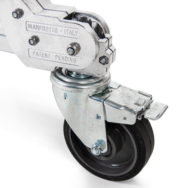 Der Ständer besteht aus verchromtem Stahl mit gravitätsgegossenen Aluminiumkomponenten und verfügt über ein mehrteiliges Design, das außergewöhnliche Festigkeit und Steifigkeit bietet. Er bietet eine maximale Arbeitshöhe von bis zu 610 cm und eignet sich daher für große Studioumgebungen, Filmsets und Rundfunkanwendungen, die eine erhöhte Rigging-Ausrüstung erfordern.