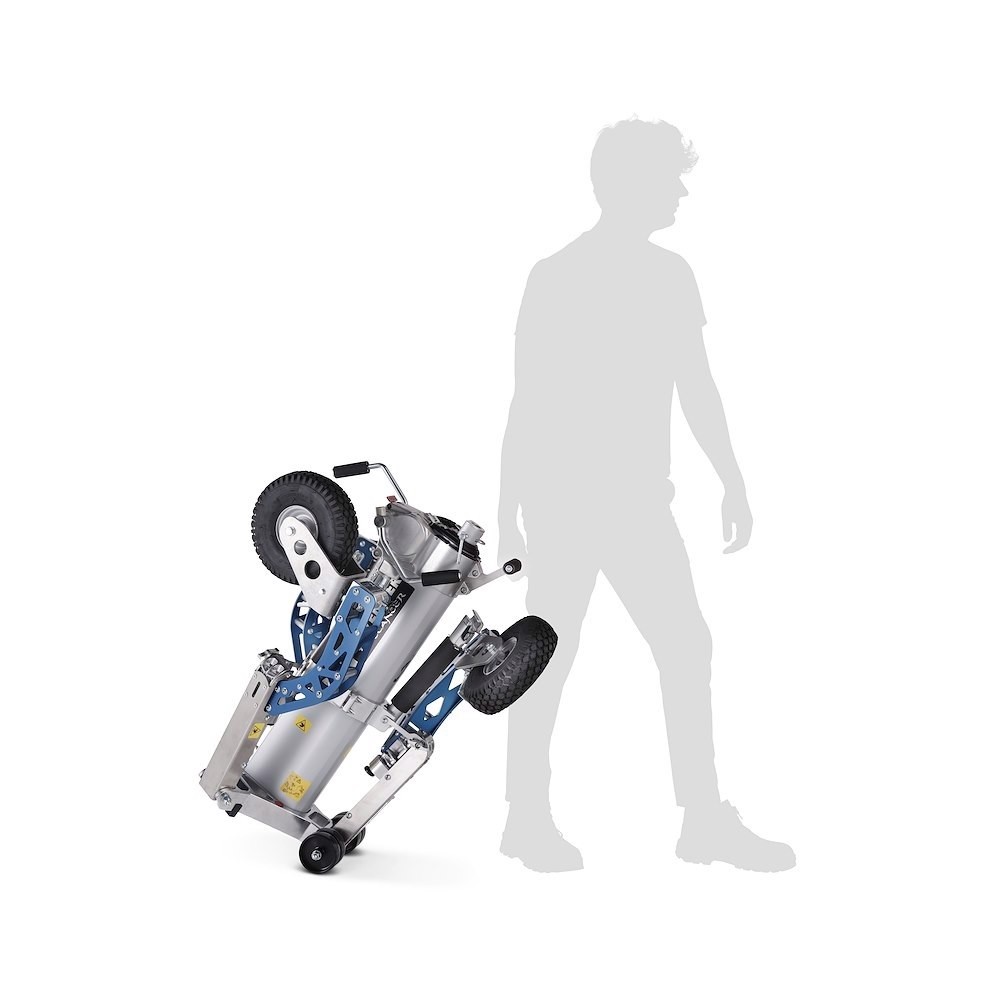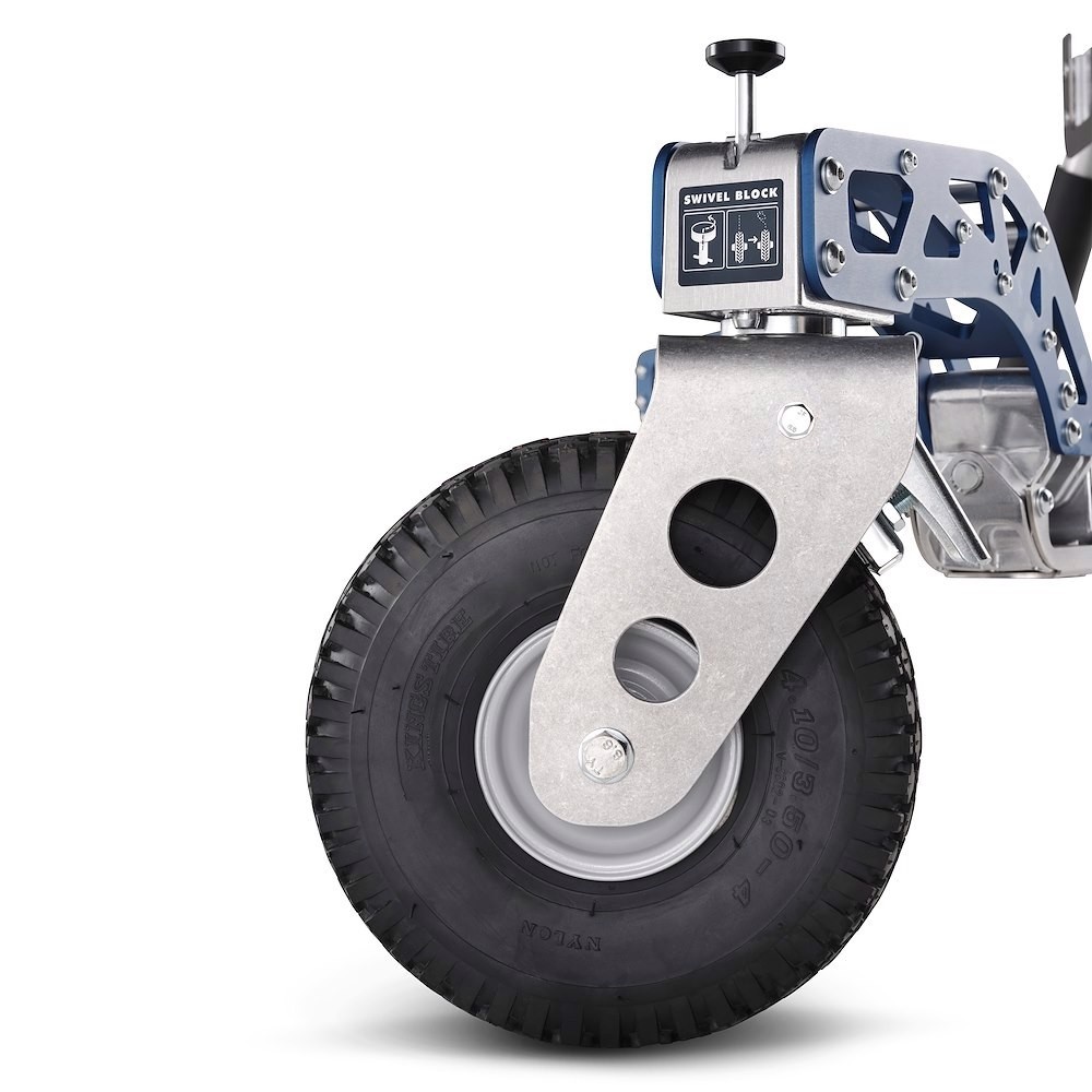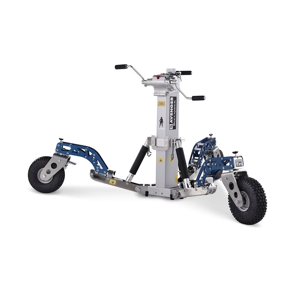 Der Buccaneer wurde mit Blick auf die Sicherheit der Benutzer entwickelt und ist TÜV-, GS- und CE-zertifiziert, wodurch die Einhaltung der höchsten internationalen Sicherheitsstandards gewährleistet ist. Er verfügt über drei verstellbare Nivellierfüße für unebenes Gelände, eine breite Standfläche von 187 cm für maximale Stabilität und drei gebremste, pannensichere, mit Schaumstoff gefüllte Räder mit multidirektionaler Feststellung für mühelose Manövrierbarkeit – selbst bei voller Beladung. Weitere praktische Details sind eine magnetische Fernbedienungshalterung, ein Gewichtsbefestigungspunkt und Transporträder mit zwei Griffen für einen leichteren Transport im zusammengeklappten Zustand.