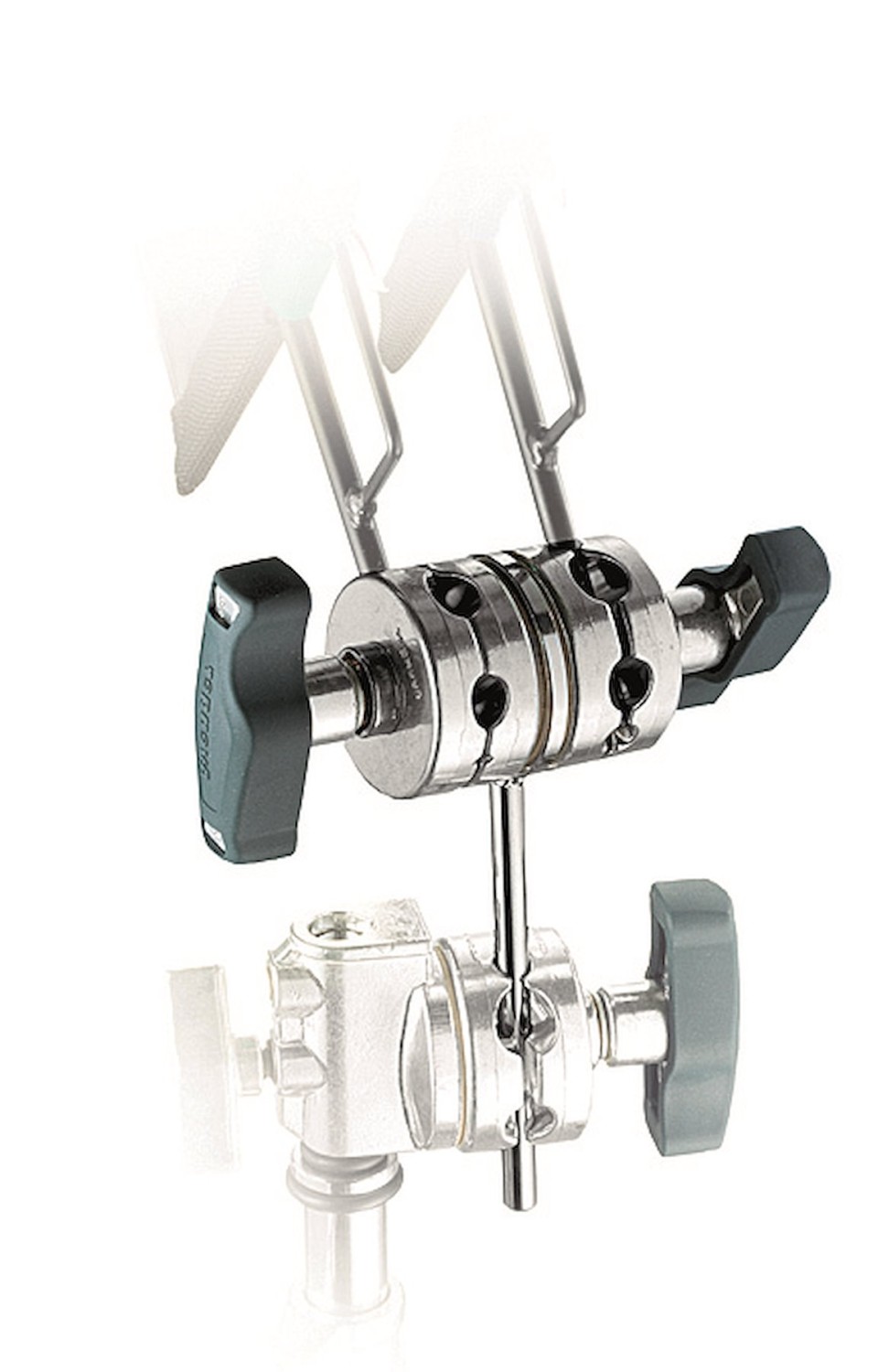 Der Avenger D100 Double Grip Head ist ein professionelles Griffzubehör mit zwei verbundenen 2,5-Zoll-Griffköpfen auf einer Stahlplatte, das die gleichzeitige Befestigung mehrerer Lichtmodifikatoren oder Zubehörteile für Foto- und Filmaufnahmen ermöglicht.