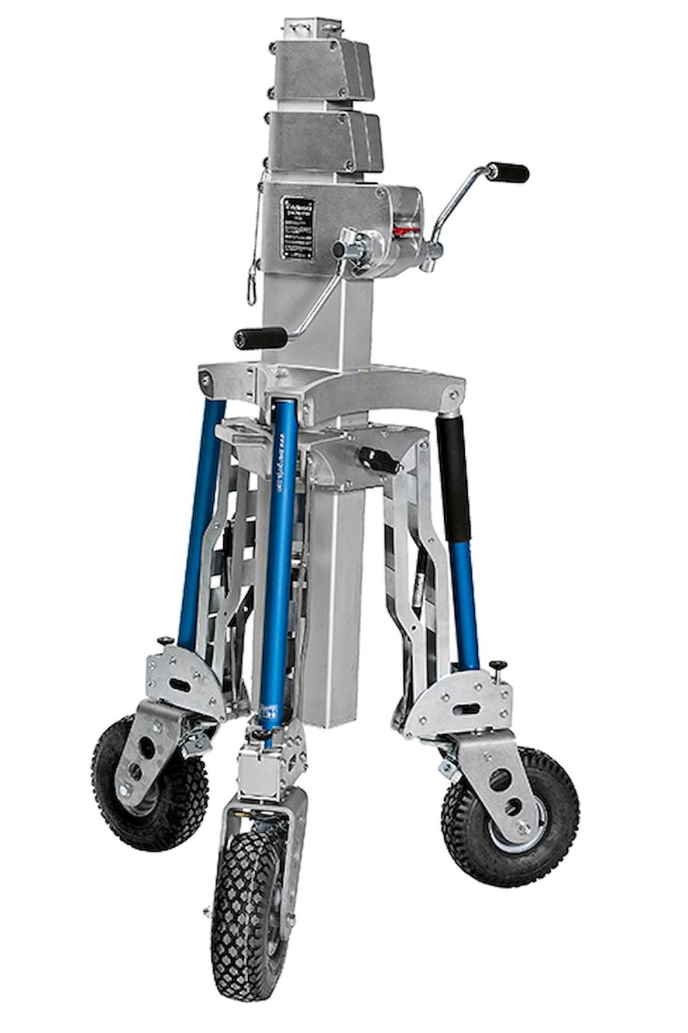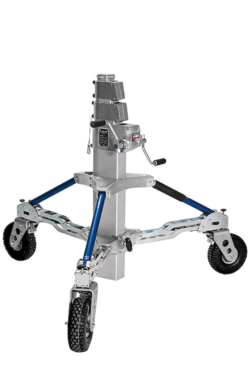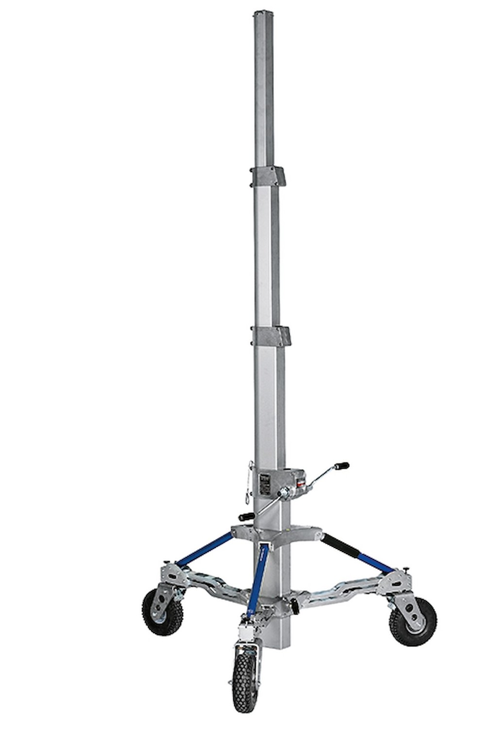 • Hochbelastbarer, kurbelbetriebener Ständer mit drei Windenabschnitten