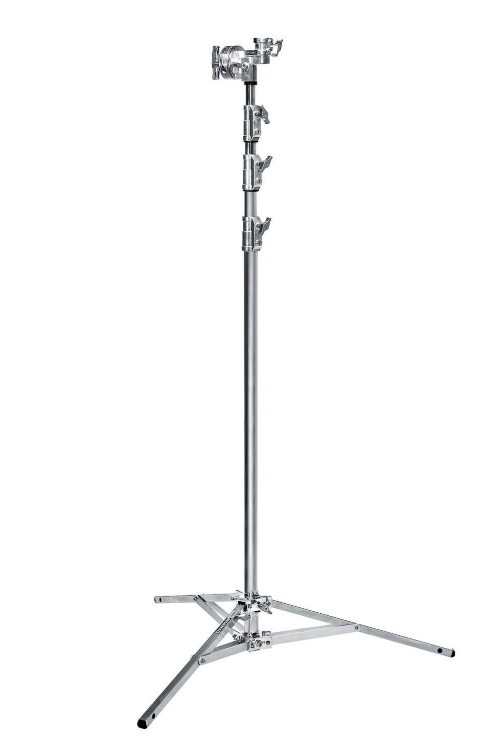 Der Avenger A3059CS Overhead Stand 59 ist ein robustes Stahlstativ, das für professionelle Anwendungen entwickelt wurde, die eine hohe Stabilität und Tragfähigkeit erfordern. Mit einer maximalen Höhe von 5,78 m und einer Tragfähigkeit von 40 kg verfügt es über einen integrierten Griffkopf, verstellbare Beine und eine robuste, verchromte Stahlkonstruktion zur sicheren Aufnahme von schwerem Gerät, Rahmen und Rohren.