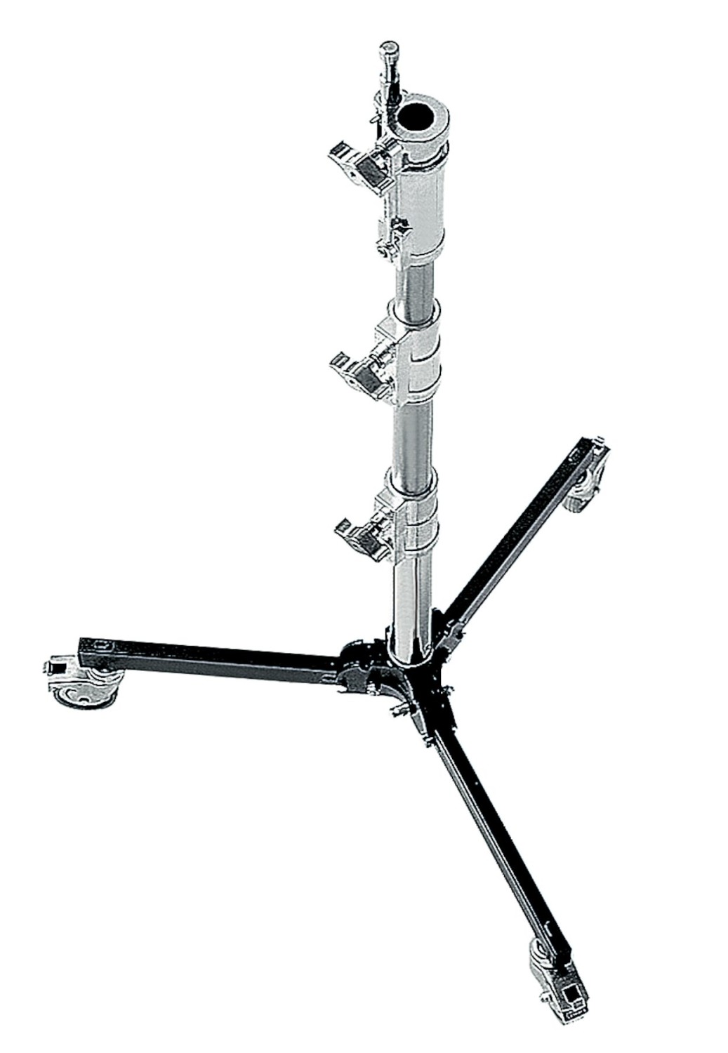 Junior Roller Low Boy Stand 4' s Combo Head je robustní stativ z chromované a černé oceli a hliníku, která se vyznačuje nízkou základnou pro extra stabilitu, brzdnými kolečky, dvěma výsuvnými sekcemi a jak 1-1/8" junior přijímačem (samice), tak zasouvacím 5/8" čepem typu Baby (samec). Nohy lze složit pro snadný transport a skladování. Stativ váží 6,35 kg a má stabilní základnu o průměru 75 cm.