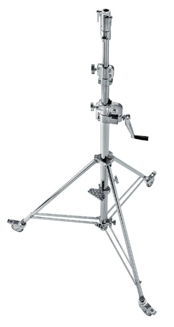 Der Avenger B6030CS Wind-Up Stand ist ein robustes und vielseitiges Stativ, das für professionelle Foto-, Film- und Beleuchtungsanwendungen entwickelt wurde. Es besteht aus verchromtem Stahl und bietet Langlebigkeit und Stabilität unter schweren Lasten. Das dreiteilige Design in Kombination mit einer Kurbel ermöglicht eine reibungslose und präzise Höhenverstellung von einer eingeklappten Länge von 175 cm bis zu einer maximalen Höhe von 2,96 m. Ein verstellbares Nivellierbein sorgt für Stabilität auf unebenem Gelände, während gebremste Räder das Bewegen des Ständers zwischen Arbeitsplätzen erleichtern und ihn sicher an seinem Platz arretieren. Mit einer maximalen Tragkraft von 30 kg kann es Kameras, Beleuchtungsgeräte und andere professionelle Ausrüstung zuverlässig tragen und ist somit ein zuverlässiges Werkzeug für Studios und Außenaufnahmen.