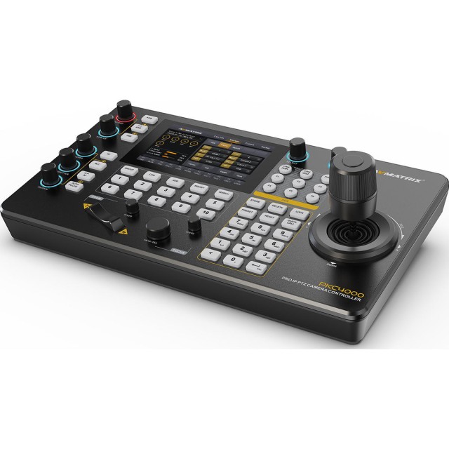Mit einem 5-Zoll-Touchscreen, einem 4D-Joystick und Unterstützung für Visca-, Pelco P&D-, Onvif- und IP-Protokolle verwaltet dieser Controller bis zu 100 PTZ-Kameras mit Echtzeit-Videodekodierung. Steuern Sie Belichtung, Blende, Fokus und Bewegung mühelos. Mit PoE- oder 12-V-Gleichstromversorgung ist er ideal für Studios, Live-Events und Broadcast-Umgebungen. NDI-Version.