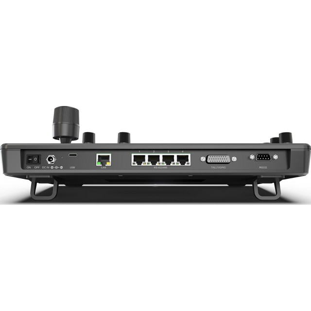 Der Touchscreen-Kamera-Controller bietet eine einfache und intuitive Bedienung mit einem 5-Zoll-Touchscreen und einem 4D-Joystick. Er unterstützt die Protokolle Visca, Visca Over IP, Pelco P&D und Onvif und ermöglicht die Steuerung über IP-, RS-422-, RS-485- und RS-232-Schnittstellen. Mit Echtzeit-Videoüberwachung, automatischer IP-Adressvergabe und Verwaltung von bis zu 100 IP-Kameras sorgt er für einen effizienten Betrieb der PTZ-Kameras. Die Unterstützung der Videodekodierung ermöglicht die Echtzeit-Signalüberwachung und bietet Benutzern Live-Feedback für eine genaue Einrichtung. Die automatische IP-Adressvergabe vereinfacht den Einrichtungsprozess, während die Fähigkeit des Controllers, bis zu 100 IP-Kameras in einem einzigen Netzwerk zu verwalten, ihn für Großproduktionen geeignet macht. Darüber hinaus verfügt das Bedienfeld über sechs vom Benutzer zuweisbare Tasten für den schnellen Zugriff auf Grundfunktionen und bietet spezielle Bedienelemente zum Einstellen von Belichtung, Blende, Fokus, Schwenken, Neigen und mehr. Das Gerät kann über PoE oder eine 12-V-Gleichstromversorgung mit Strom versorgt werden, und für diejenigen, die erweiterte IP-Video-Workflows benötigen, ist eine NDI-Version erhältlich.