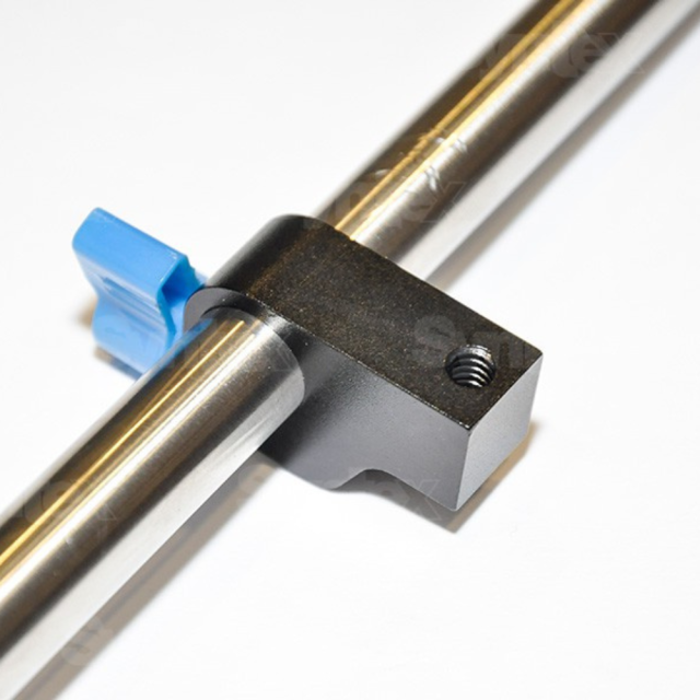 Stangenhalterungsadapter mit 1/4"-Gewinde. Ermöglicht die Befestigung einer Vielzahl von Zubehörteilen mit 1/4"-Gewinde an der Schulterstütze. Für Stangen mit 15 mm Durchmesser.