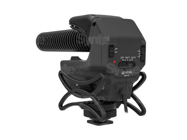 Das SMX-15 Gewehrmikrofon wurde speziell für DSLRs und andere Kompaktkameras entwickelt. Es verwendet den gleichen Mikrofoneinsatz wie die professionellen Modelle SGM-250 und SGM-250P und bietet daher eine hervorragende Klangqualität. Mit seinem traditionellen Gewehrdesign mit enger Richtcharakteristik nimmt er das Schallfeld vor der Kamera mit einem hohen Maß an Umgebungsgeräuschunterdrückung auf. Das Mikrofon bietet außerdem einen +20-dB-Verstärkungsschalter, eine -10-dB-Dämpfungszelle, einen Hochpassfilter, der Frequenzen unter 120 Hz unterdrückt, eine Stromversorgung mit zwei AA-Zellen und eine integrierte, gepolsterte Halterung mit Standard-Blitzbuchse. Bei Registrierung gewährt der Hersteller eine 10-jährige Garantie!