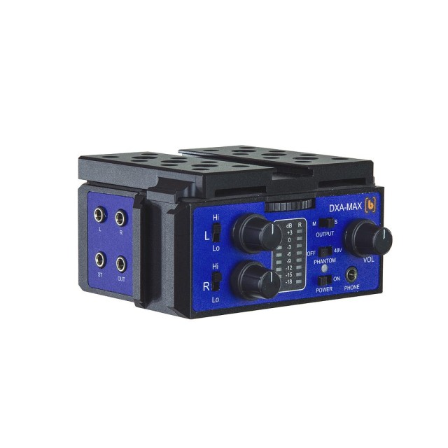 Mit allen Funktionen, die Sie brauchen, einschließlich eines eingebauten XLR-Anschlusses mit 48-Volt-Phantomspeisung für den Anschluss jedes professionellen Mikrofons. Darüber hinaus gibt es zwei 3,5-mm-Mono- und eine 3,5-mm-Stereo-Minibuchse mit Steckernetzteil für den Anschluss beliebiger kamerainterner Mikrofone wie z. B. der beliebten Rode VideoMics. Sie können auch einen drahtlosen Empfänger an die XLR- oder Miniklinken-Eingänge anschließen. Schließen Sie zwei Audioquellen gleichzeitig für Zweikanalaufnahmen an. Jeder Kanal kann unabhängig voneinander auf den optimalen Aufnahmepegel eingestellt werden. An den DXA-MAX können Sie die Mikrofone anschließen, die für Ihre Situation am besten geeignet sind.