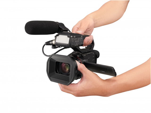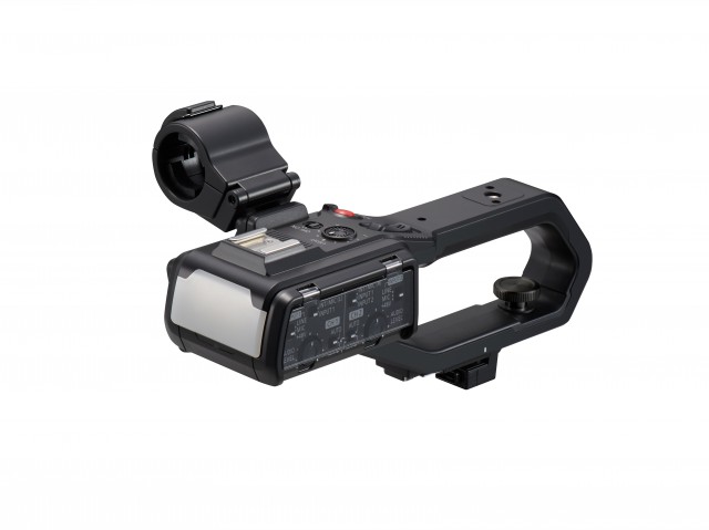 Jeder der beiden Kanäle verfügt über eine +48-V-Phantomspeisung und einen MIC/LINE-Pegelschalter mit Verstärkungseinstellung. Unterstützt werden lineare 24-Bit-PCM-Aufnahmen (MOV), 16-Bit-AAC-Aufnahmen (MP4) und hochwertige Zweikanal-Dolby-Audio-Aufnahmen (AVCHD). Für den HC-X1500 ist ein Griff als optionales Zubehör erhältlich.
