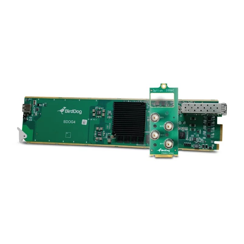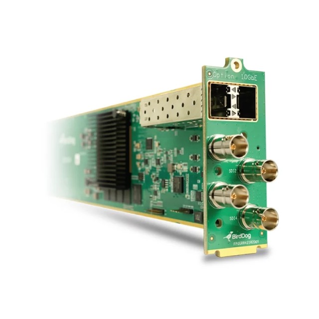 BirdDog OG4 ist die weltweit erste NDI OpenGear-Karte. Sie bietet vier unabhängig konfigurierbare 12G-SDI-Ports. Vollständige Dashboard-Unterstützung und ein SFP+-Port für 10GbE-Verbindungen sind ebenfalls enthalten. Sie ist vollständig kompatibel mit der vierten Generation der openGear-Plattform, oGx, einem modularen 2RU-Rack-Rahmensystem mit offener Architektur.