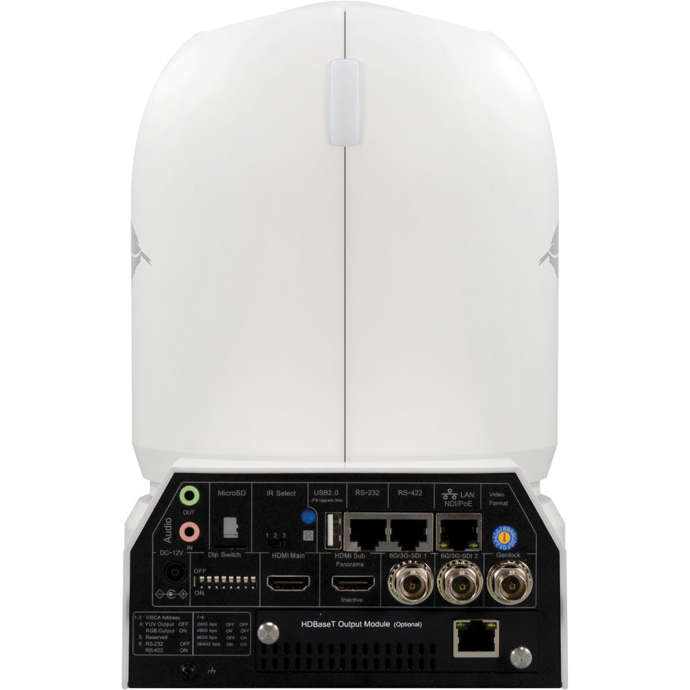 Ausgestattet mit einem 1" Sony Exmor R 14,2MP CMOS Sensor und einem 9,3-111,6mm Objektiv, nimmt diese Kamera Videos mit Auflösungen von bis zu 3840 x 2160 bei 30 fps in einem Sichtfeld von 64,6 bis 6,1° auf. Zusätzlich zum 12-fachen optischen Zoom bietet die P4K einen bis zu 18-fachen Digitalzoom bei 4K oder einen bis zu 24-fachen Digitalzoom bei Full HD. Das integrierte Schwenk-/Neigesystem ermöglicht ein kontinuierliches Schwenken um ±350° und Neigen um 120° mit bis zu 100° bzw. 50° pro Sekunde. Die Fokussierung kann manuell oder automatisch erfolgen. Zusätzlich zu NDI bietet die Kamera HDMI- und zwei 6G-SDI-Schnittstellen.