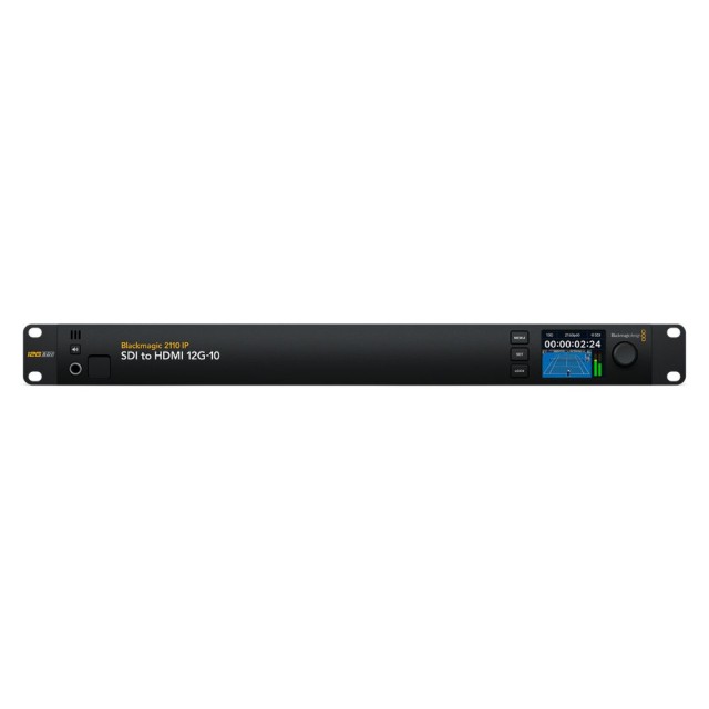 Der Blackmagic 2110 IP SDI zu HDMI 12G-10 bietet farbgenaues Monitoring für OLED-Fernseher und Mehrkanal-Surround-Sound-Monitoring mit Aktivlautsprechern. Er ist ideal für Color-Grading-Studios und Projektionsräume.