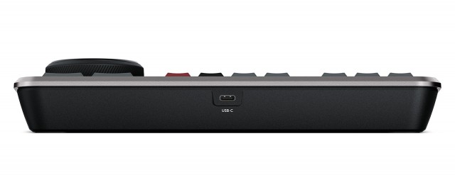 Das DaVinci Resolve Speed Editor-Panel ist außerdem mit Bluetooth und einem internen Akku für einen vollständig kabellosen Betrieb ausgestattet. Eine USB-Schnittstelle kann zum Anschluss an Computer (und zum Aufladen) verwendet werden.