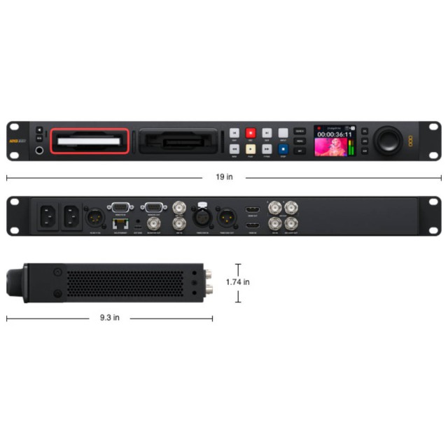 Wenn Benutzer einen leicht zu transportierenden Rekorder benötigen, können sie zur HyperDeck Studio HD Mini-Option greifen, die nur 1/3 der Breite eines Standard 19"-Racks hat. Mit dem optionalen Teranex Mini Rack Shelf Adapter können drei Rekorder nebeneinander integriert oder mit anderer Technologie kombiniert werden, wie z.B. dem Teranex Mini Analog to SDI 12G, der analoges Video in SDI umwandelt, z.B. für Archivierungsarbeiten. Das HyperDeck Studio HD Mini kann genauso gut als Einzelgerät, auf Werkbänken usw. betrieben werden.