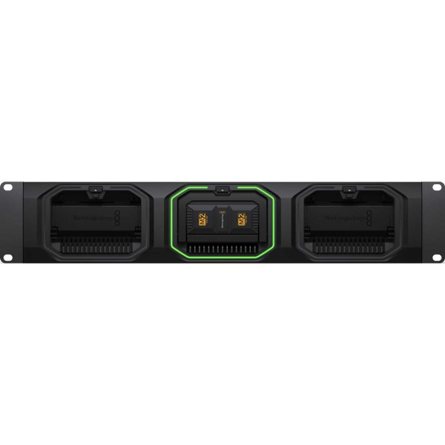 Das Blackmagic Media Dock beschleunigt den Postproduktions-Workflow, indem es die Bearbeitung und Farbkorrektur schneller und einfacher macht. Montieren Sie bis zu drei Blackmagic Media Module für den Hochgeschwindigkeitszugriff auf die Medien von mehreren URSA Cine-Kameras zur gleichen Zeit. Die vier 10G-Hochgeschwindigkeits-Ethernet-Ports ermöglichen die direkte Verbindung von bis zu vier separaten Schnittplätzen und sind extrem schnell, auch wenn viele Benutzer gleichzeitig angeschlossen sind.