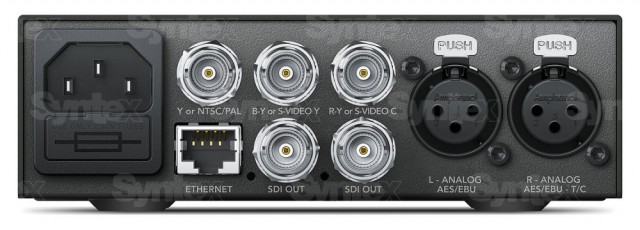 Die Teranex Mini-Produkte sind außerdem mit Standard-XLR-Anschlüssen für symmetrische Audioleitungen, digitale AES/EBU-Schnittstellen oder zum Anschluss von Timecode-Quellen ausgestattet. Die Benutzer können standardmäßige Studiokabel mit einem zuverlässigen Steckertyp verwenden, der mit einer Verriegelung versehen ist, um ein versehentliches Ziehen des Kabels zu verhindern. Der Audioschaltkreis des Teranex Mini wurde komplett überarbeitet, um ein extrem geringes Rauschen (über -115 dBFS) und eine maximale Audioqualität zu gewährleisten
