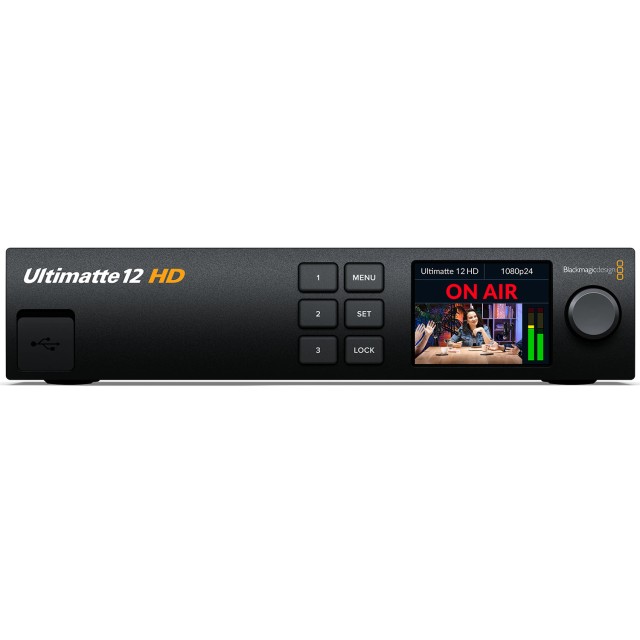 Zusätzlich zu diesen 3 Modellen gibt es ein preiswerteres Ultimatte 12 HD Mini-Modell mit HDMI-Anschlüssen, das nur 495 US-Dollar kostet. Die Ultimatte 12 HD Mini wurde speziell dafür entwickelt, dass ATEM Mini-Kunden die Vorteile des Keying in Broadcast-Qualität nutzen können, um innovative virtuelle Sets mit festen Kameras zu bauen. Alle Modelle der Ultimatte 12 verfügen über integrierte Bildspeicher, so dass Sie mit Standbildern als Hintergründe keyen können und die Kosten für externe Geräte entfallen. Das bedeutet, dass das gesamte Compositing in der Ultimatte selbst durchgeführt werden kann!