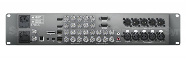 Das Produkt kann in Instrumentenschränke eingebaut oder freistehend verwendet werden - die attraktive Frontplatte aus Aluminiumlegierung verfügt über ein integriertes Display und Tasten zum schnellen Umschalten von Audio- und Videoeingängen und anderen Einstellungen. Die Rückseite ist mit nahezu allen denkbaren Audio- und Videoschnittstellen ausgestattet, darunter 12G-SDI, HDMI 2.0, analoges Composite- oder Component-Video, symmetrisches Audio mit XLR- oder digitalen AES/EBU-Anschlüssen, Erweiterungssteckplätze für optische Module, RS-422-Eingang, zwei Netzteile und vieles mehr