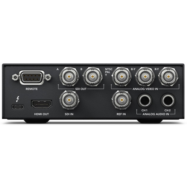 Die bei der UltraStudio HD Mini verwendete Thunderbolt 3-Schnittstelle kann Daten mit einer Geschwindigkeit von bis zu 40 Gbit/s übertragen. Dies ermöglicht eine unkomprimierte Videoaufzeichnung und -wiedergabe, so dass die normalerweise für die Videocodierung/-decodierung benötigte Prozessorleistung für andere Zwecke genutzt werden kann. Das UltraStudio HD Mini wird außerdem über den Thunderbolt 3-Bus mit Strom versorgt, so dass bei der Verwendung unterwegs keine externen Stromadapter benötigt werden. Das UltraStudio HD Mini nimmt nur 1/3 der Rack-Breite ein, so dass es über den Teranex Mini Rack Shelf Adapter zusammen mit anderen Geräten der Teranex Mini Serie oder allein, z.B. auf einem Tisch, verwendet werden kann. Es ist auch mit dem optionalen Teranex Mini Smart Panel kompatibel, das ein LCD-Display für die Videovorschau und die Anzeige von Audiopegeln, Timecode usw. bietet. Das UltraStudio HD Mini passt zusammen mit einem Laptop und einem tragbaren Laufwerk problemlos in einen Rucksack und eignet sich damit hervorragend für die Aufnahme oder Wiedergabe von Videos an Drehorten, in Übertragungswagen usw.