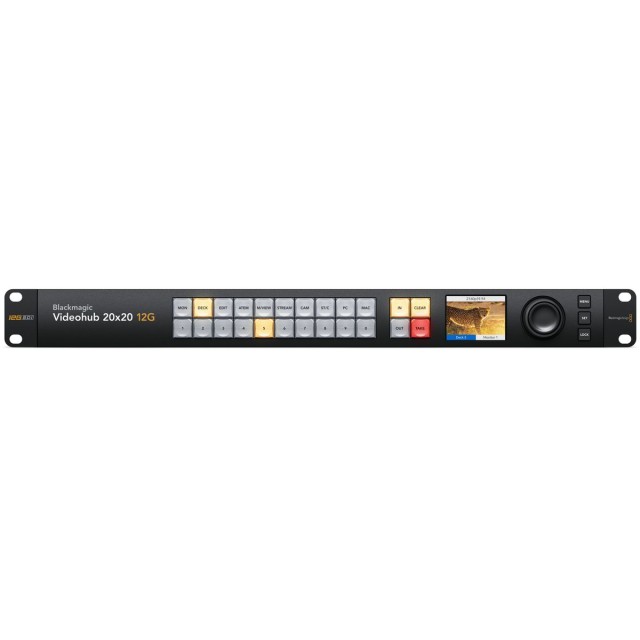 blackmagic Videohub 12G-SDI-Router sind in den Varianten 10x10, 20x20 und 40x40 erhältlich und bieten latenzfreie Verarbeitung von SD-, HD- und Ultra HD-Standards bis zu 2160p60, ein integriertes Bedienfeld, ein LCD-Display für die Live-Video-Vorschau und Kanalbeschriftungen, SDI-Resync für alle 12G-SDI-Eingänge, Kompatibilität mit den optionalen Bedienfeldern…