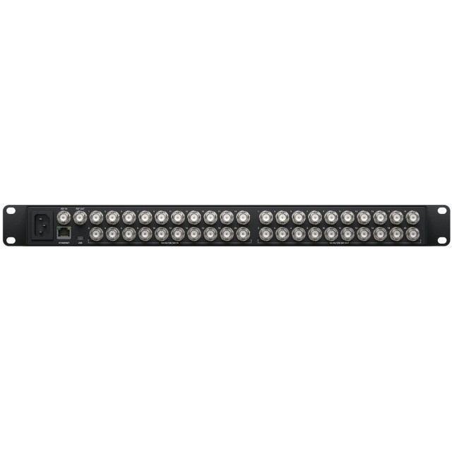 Alle Varianten der Blackmagic Videohub 12G-Serie verfügen über eine fortschrittliche 12G-SDI-Schnittstelle mit Unterstützung für alle gängigen SD-, HD- und Ultra HD-Videoformate bis zu 2160p60 und sind kompatibel mit SD-, HD-SDI-, 3G-SDI-, 6G-SDI- und 12G-SDI-Technologie. Jeder Kanal der Kreuzschiene kann jeden unterstützten Videostandard in Echtzeit verarbeiten: Das Modell 40x40 ist daher in der Lage, bis zu 40 verschiedene Standards in Echtzeit zu verarbeiten. Jeder der Eingänge bietet eine Resynchronisierung des Signals, was einen geringeren Jitter und die Möglichkeit einer längeren SDI-Verkabelung ohne das Risiko von Bildausfällen bedeutet.