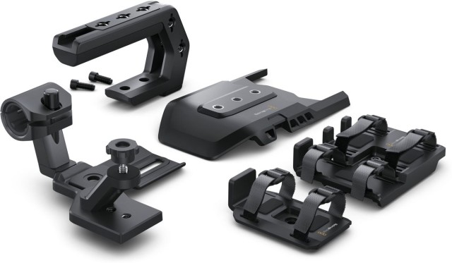Verwandeln Sie die URSA Broadcast in die ultimative "Run and Gun"-Eng-Kamera! Inklusive oberem Griff mit 3/8″-Befestigungspunkten, Schutzhülle, Mikrofonhalterung, Lichthalterung und Seitenwandhalterung für Zubehör.