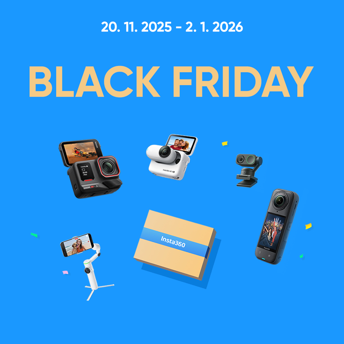 Wir haben großartige Neuigkeiten für Sie –vom 20. November 2025 bis zum 2. Januar 2026gibt es eine limitierte Rabattaktion auf eine ganze Reihe ausgewählter Produkte der Marke Insta360! Egal, ob Sie Actionvideos drehen, streamen oder nach der richtigen kompakten Kamera für Ausflüge suchen, jetzt ist der ideale Zeitpunkt, um Ihre Ausrüstung zu erweitern und dabei zu sparen.