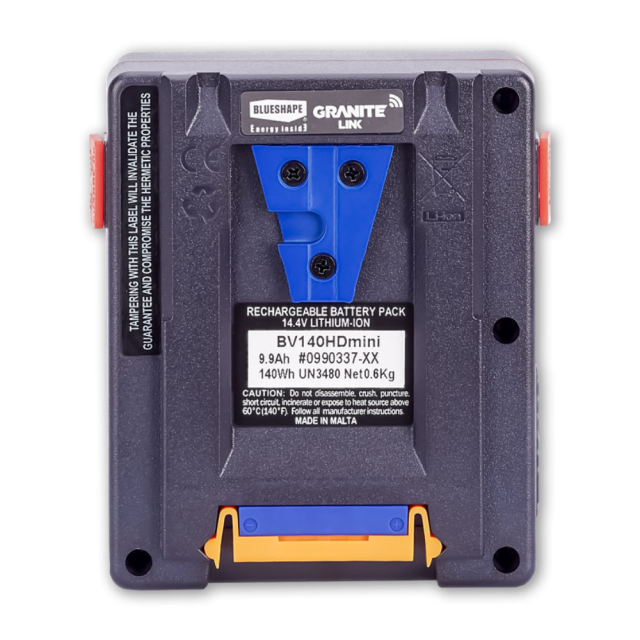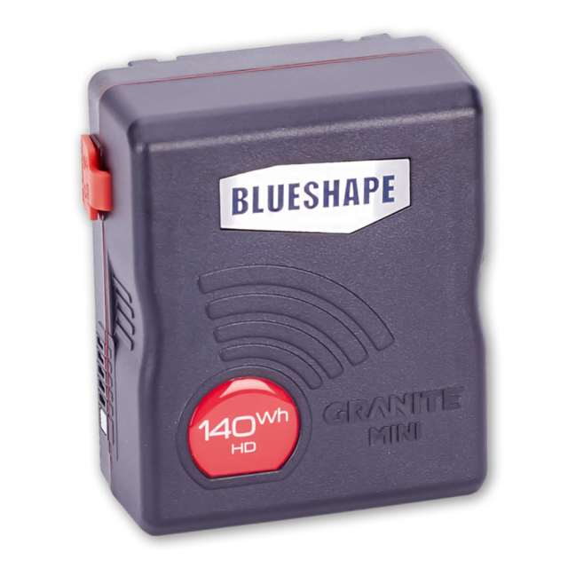 V-Mount Kompaktakku Blueshape BV140HDMINI mit 143Wh Kapazität mit 2x D-Tap. Geeignet für RED-Kameras.