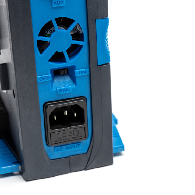 Gleichzeitiges Aufladen, bis zu 2 installierbare Akkus, ausziehbares Fußdesign, ein- und ausschaltbarer Lüfter, DC-UPS - unterbrechungsfreie AUX-Stromversorgung