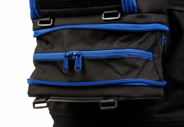 Die Tasche besteht aus abriebfestem Cordura®-Gewebe in Kombination mit starkem Mesh-Gewebe, damit die vom Gerät erzeugte Wärme entweichen kann. Öffnungen mit Klettverschlüssen ermöglichen es, die Kabel von einem Ende der Tasche zum anderen zu führen.
