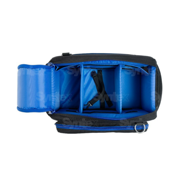 Diese Tasche hat doppelte (blaue) YKK®-Reißverschlüsse, die die obere Klappe mit einem Handgriff öffnen. Verstauen Sie Ihre Kamera, Zubehör, Akkus, Ladegeräte, Kabel und Werkzeuge in dieser einfach zu bedienenden run&gunBag von camRade.
