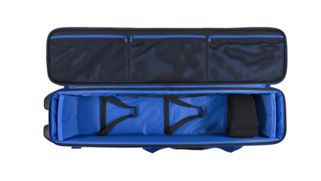 Der Innenraum ist durchdacht gestaltet und verfügt über zwei Stoßfänger zur Sicherung der Stativköpfe sowie mehrere große Reißverschlusstaschen für die übersichtliche Aufbewahrung von Zubehör. Ein Netzkorb kann an den Stativbeinen befestigt werden, um unterwegs Zugriff auf kleine Werkzeuge zu haben. An der Außenseite befindet sich eine durchsichtige ID-Tasche zur einfachen Identifizierung. Für zusätzlichen Komfort auf Reisen ist ein gepolsterter Schultergurt aus Wildleder im Lieferumfang enthalten. Dank strapazierfähiger YKK®-Reißverschlüsse und Liebe zum Detail ist die tripodBag Traveler ein zuverlässiger Begleiter für professionelle Crews und sorgt dafür, dass Ihre Ausrüstung sicher und einsatzbereit ankommt.
