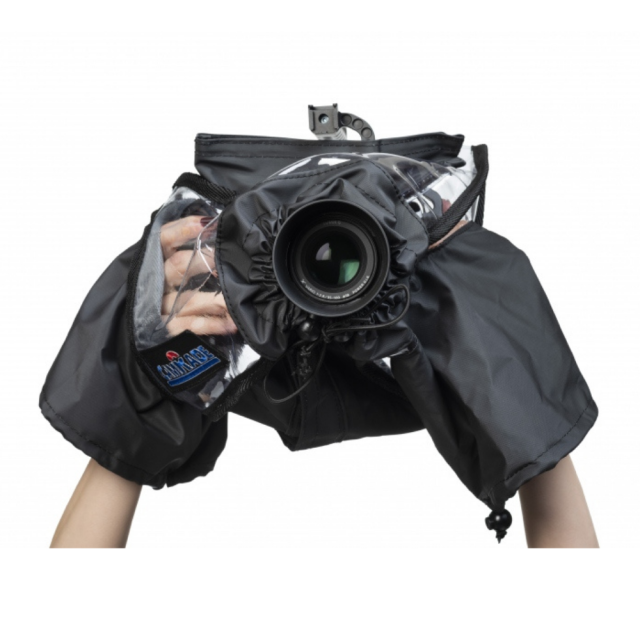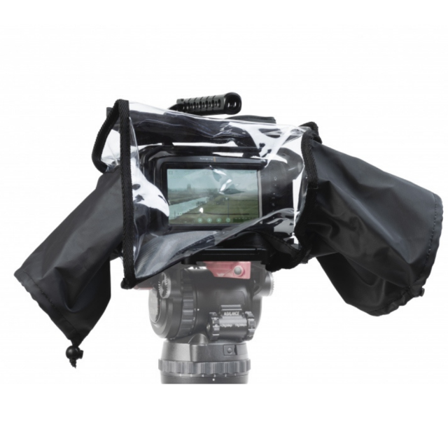 Ein Regenmantel, der speziell auf die Blackmagic Pocket Cinema Camera 4K und 6K zugeschnitten ist, um sie vor Regen, Feuchtigkeit und Staub zu schützen.
