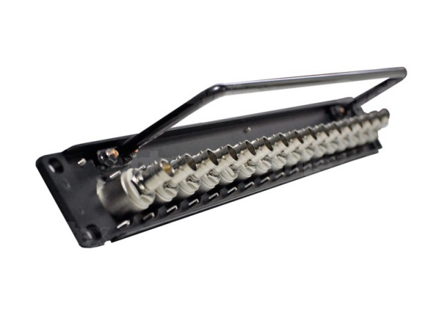 Canare Patch Panel BNC 19" 1U - ausgestattet mit doppelseitigen BNC (F) / BNC (F) Canare BCJ-JRUDK Adaptern und Kabelhalter auf der Rückseite. Mit den mitgelieferten metrischen Schrauben in vorgebohrten Löchern mit vorgestanzten Gewinden lassen sich die Anschlüsse leicht manipulieren , ohne dass das Patchpanel aus dem Rack entfernt werden muss!