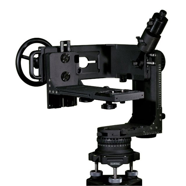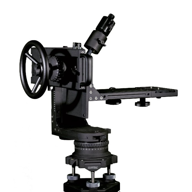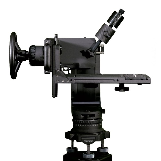Die Lambda 50 3rd Axis wird als Ersatz für den Lambda 50 Kameratisch montiert, wodurch 3 unabhängige Drehachsen für Schwenken, Neigen und Drehen entstehen.