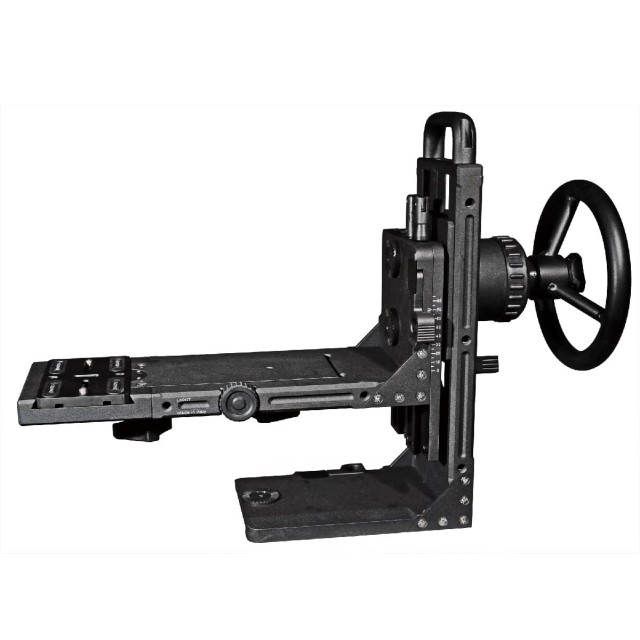 Die Präzisionskurbeln, mit denen der Schlitten eingestellt wird, ermöglichen es, die Nodaleinstellung auf allen 3 Achsen zu kombinieren.