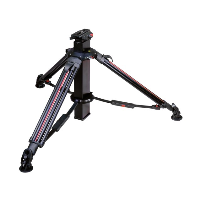 Dieses Lifto 25/S Pro-System ist mit einem integrierten Spreizer und Gummifüßen, einer Schnellwechselhalterung für PTZ-Kameras und einem Sicherheitsring zur Sicherung der Kamera ausgestattet. Es kann auf dem leichten Cartoni-Rollwagen montiert werden, um es leicht im Studio zu transportieren.