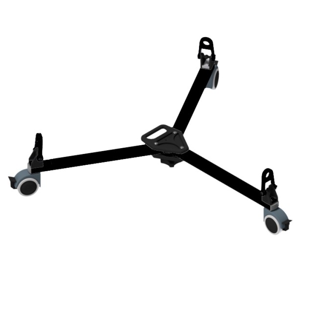 Leichte Fahrt mit 7,5 cm großen Rädern und einer Tragfähigkeit von bis zu 60 kg bei einem Gewicht von 3,3 kg. Für Stative der Serien Red Lock und SDS.