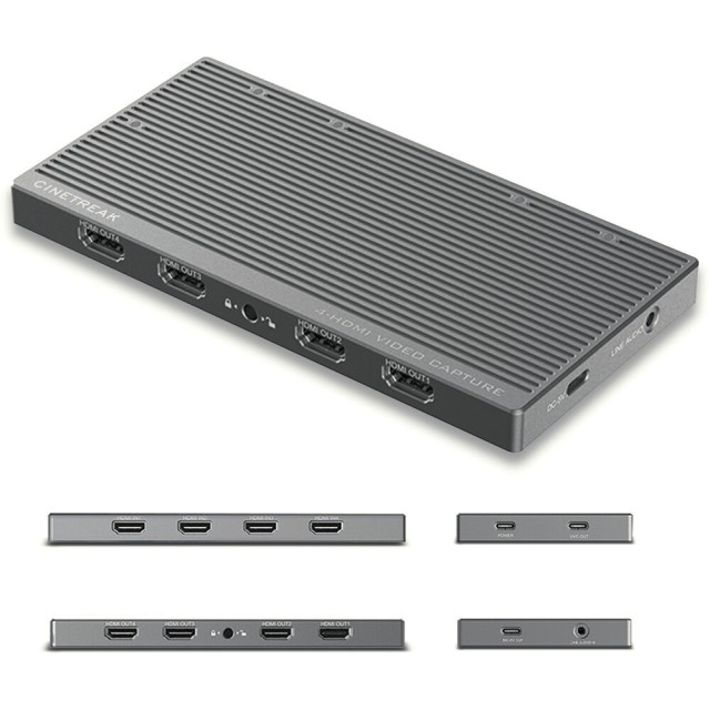Das CineTreak CT-4 ist ein professionelles 4-Kanal-HDMI-Aufnahmegerät, das echte 4K60-Leistung mit Live-Umschaltung in einem kompakten, tragbaren Design bietet. Mit vier HDMI-Eingängen mit Loop-Out, UVC-Plug-and-Play-Kompatibilität, 10-Gbit/s-USB-C-Übertragung und professionellem Audioeingang eignet es sich ideal für Live-Streaming mit mehreren Kameras, Bildung, Konferenzen und mobile Produktionsabläufe.